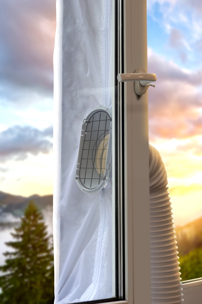 С помощью оконного адаптера можно вывести гофру от кондиционера прямо в окно, что позволяет контролировать температуру в помещении.